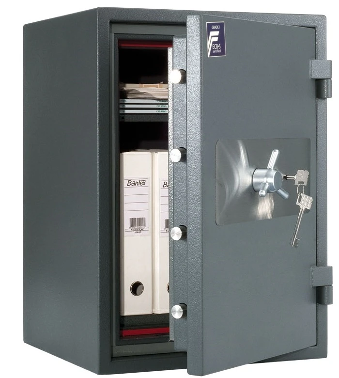 - прошёл испытания с получением европейских сертификатов безопасности: защита от взлома – EN 1143-1, grade 1 (ECB-S), защита от огня – LFS 60P (EN 15659);